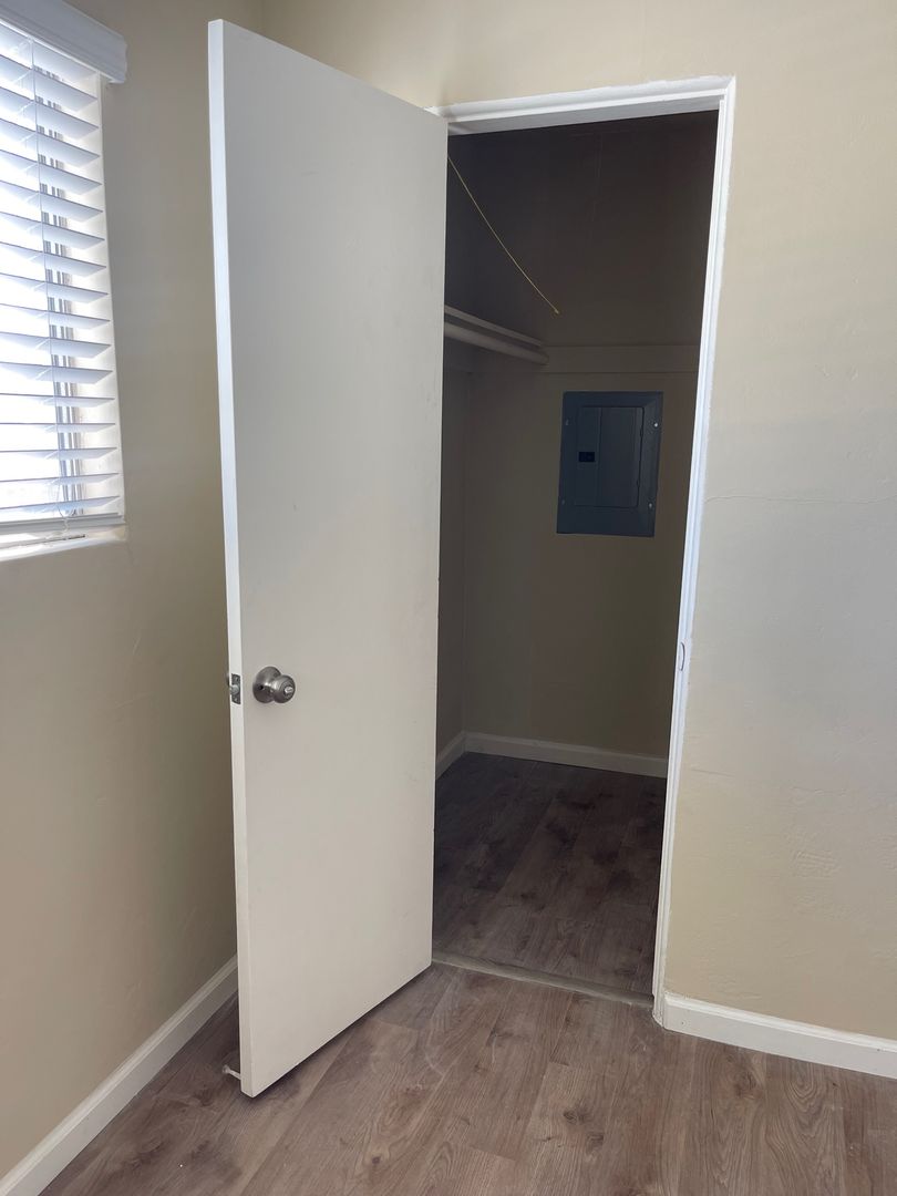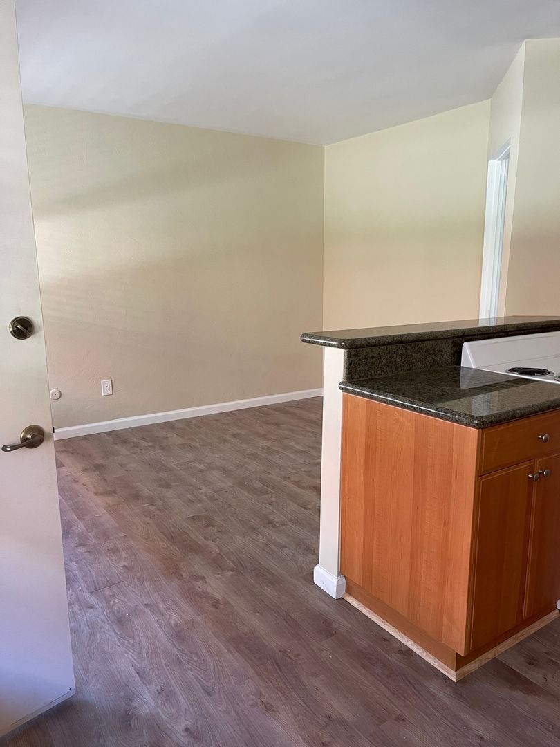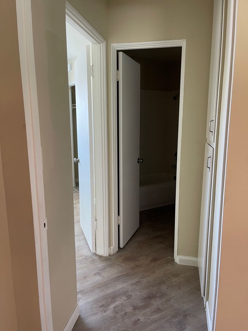 This first-floor apartment features TONS of storage space: a large walk-in closet, linen cabinet, and plenty of kitchen cabinets too! The living area has a wonderful open floor plan with windows that face the inside of our gated complex. The apartment has brand new vinyl flooring throughout and track lighting in the kitchen. This apartment is central to the front and back gates, app-enabled laundry room, off-street parking, and pool. You will be just a few short steps away from the communal outside space for summer barbecuing or relaxing with friends and neighbors.